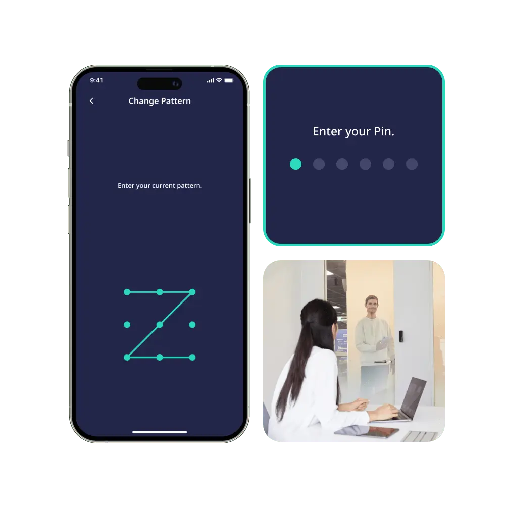 모카키 Pro는 2단계 인증(2FA)이 가능해 보안을 더욱 강화할 수 있습니다. 개별 패턴 또는 PIN 코드를 설정해 모바일 출입증 사용 전 앱 잠금 해제를 통해 추가적인 보안 절차를 확보할 수 있습니다.