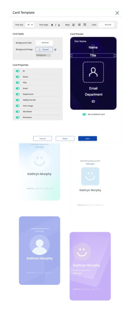 모바일 출입증의 발급과 변경, 파기하는 가장 편리한 솔루션을 만나보세요. 브랜드를 잘 나타낼 수 있는 다양한 출입증 템플릿도 제공합니다.