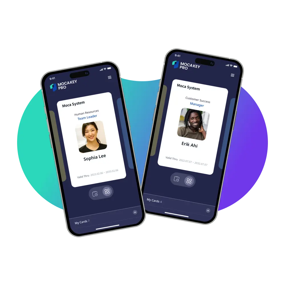 모카키 Pro 모바일 출입증은 최신 보안 기술과 수려한 디자인이 완벽하게 융합된 앱입니다. 모카키 Pro의 커스텀 기능으로 다양한 이해관계자를 만족시키세요.